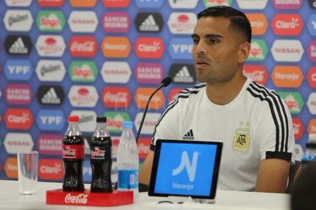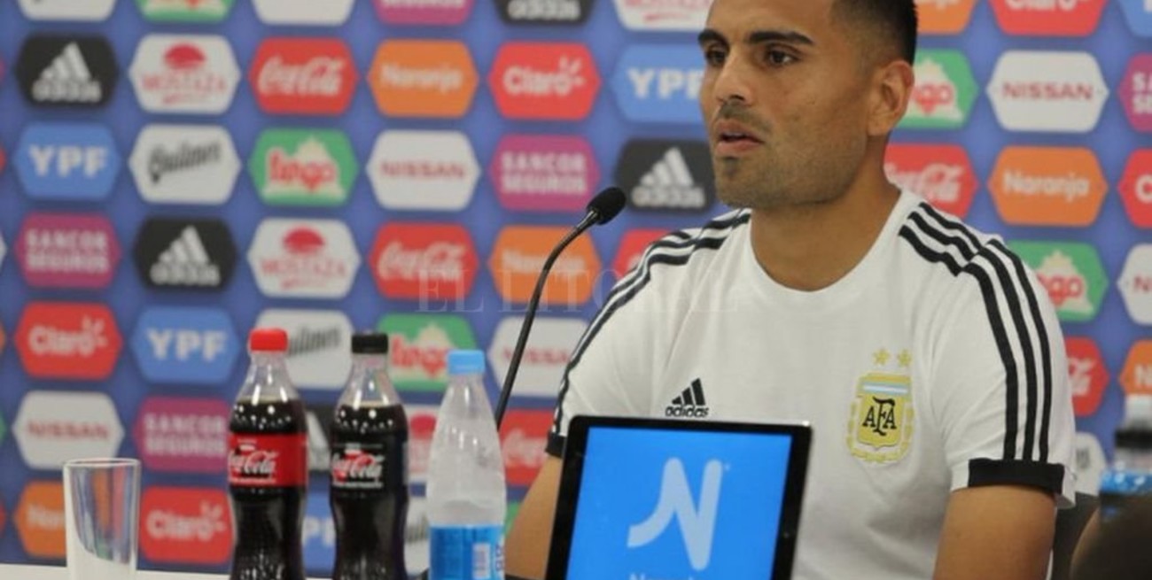 Gabriel Mercado fue uno de los designados (junto a Cristian Pavón) para realizar la atención correspondiente a la prensa, según manda el reglamento FIFA.