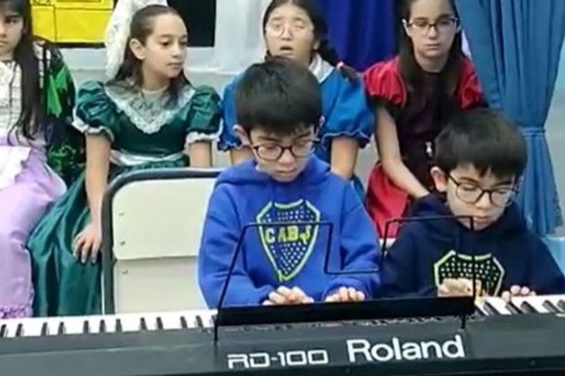 Un medio local de Comodoro Rivadavia compartió un video en el que se puede ver y escuchar el talento que tienen los mellizos para tocar las teclas del piano. Las melodías del Himno Nacional Argentino emocionaron a todos los presentes.