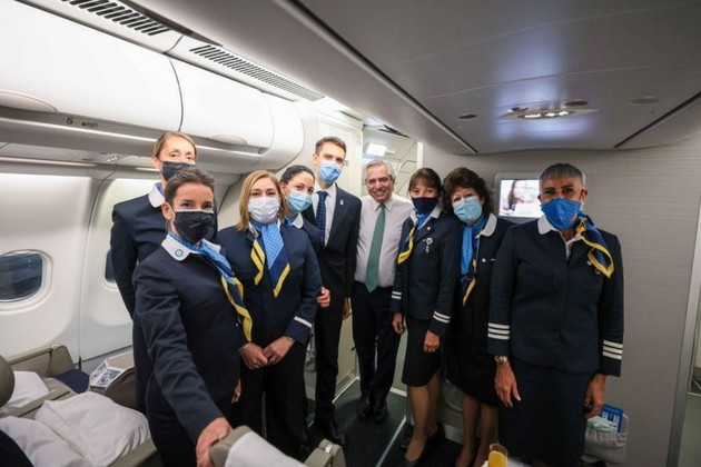 El vuelo AR 1099 de Aerolíneas Argentinas había despegado cerca de las 16:00 hora argentina desde Glasgow, donde se desarrolló la Cumbre de Líderes de la Conferencia de las Naciones Unidas sobre el Cambio Climático (COP26): aterrizó a las 6:12 en el Aeropuerto Internacional de Ezeiza "Ministro Pistarini".