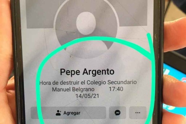 Bajo el seudónimo Pepe Argento, un usuario creó una cuenta en la red social con un alarmante mensaje: "Hora de destruir el Colegio Secundario Manuel Belgrano" con fecha el 14 de mayo de 2021 a las 17.40.