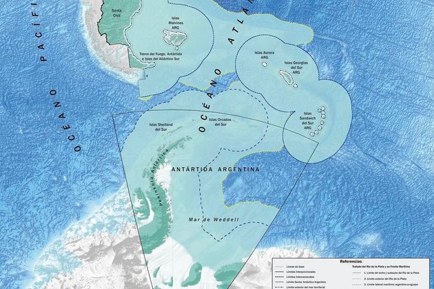 En el nuevo mapa argentino, por supuesto, se incrusta el problema de las posesiones británicas en el Atlántico sur: Malvinas, Georgias y Sandwich. Las aguas controladas por el Reino Unido suponen “casi la mitad de la zona económica argentina”, según Daniel Filmus, secretario del Gobierno para Malvinas, Antártida y Atlántico Sur, y ocupan buena parte de “la reserva de pesca más importante del mundo”.