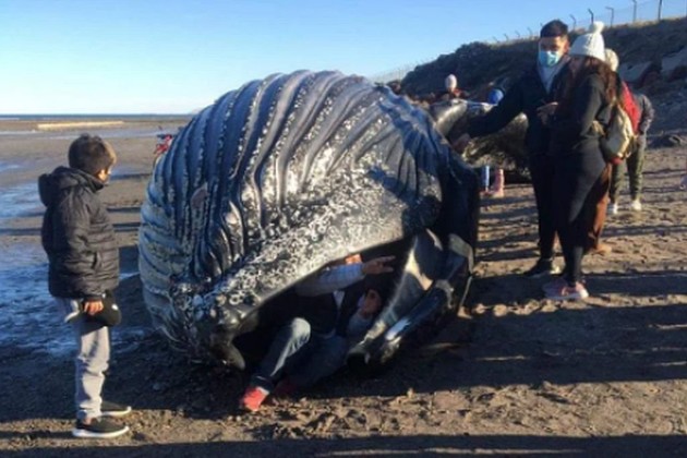 El pronunciamiento oficial se conoció tras observar ayer a los vecinos, en su mayoría jóvenes, que subieron a las redes sociales fotografías sobre el lomo del cadáver e incluso introduciendo el cuerpo dentro de las fauces del enorme mamífero, que por estas horas desprende gases y fluidos propios del proceso de descomposición.