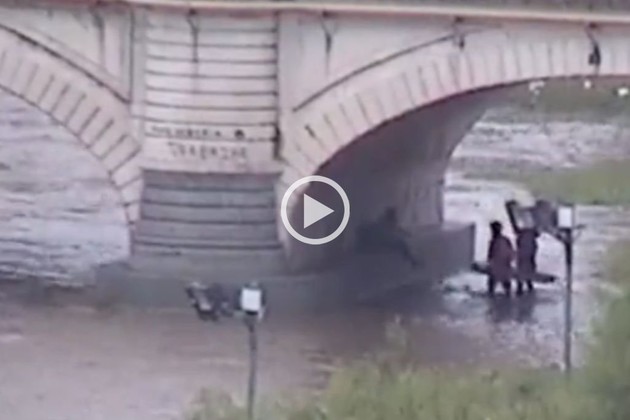 Los rescatistas socorrieron a esta persona que se encuentra en situación de calle y no podía moverse por consecuencia de la crecida del río Suquía.