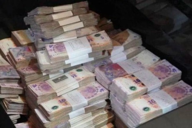 Los billetes distribuidos en fajos fueron retirados de la vivienda en un camión de caudales y la fiscalía de instrucción, a cargo del fiscal Jorge Cáceres Olivera se declaró incompetente respecto al dinero, por lo que se inició una causa anexa que recayó en el fueron federal.