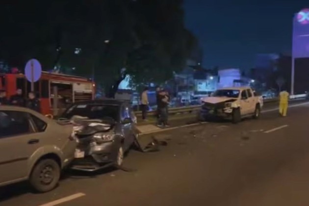 El siniestro involucró a cinco vehículos y obligó a cortar totalmente el tránsito mientras trabajaron los equipos de emergencia. Todo comenzó cuando un Ford Fiesta que era remolcado por un Volkswagen Gol sufrió la rotura de la linga de remolque. Los ocupantes de ambos vehículos se bajaron en la colectora y, en ese momento, se produjo la colisión que terminó implicando también a una Volkswagen Amarok blanca, un Renault Logan gris y un Fiat Palio gris