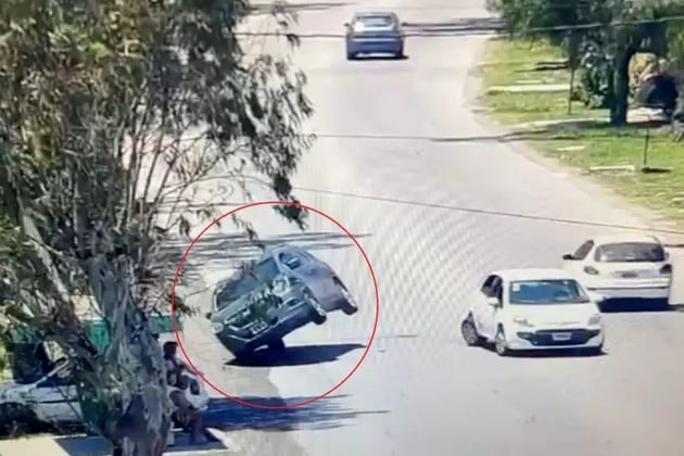 Milagro en Ensenada: embistió a otro vehículo, terminó arriba de la vereda y casi arrolla a dos personas