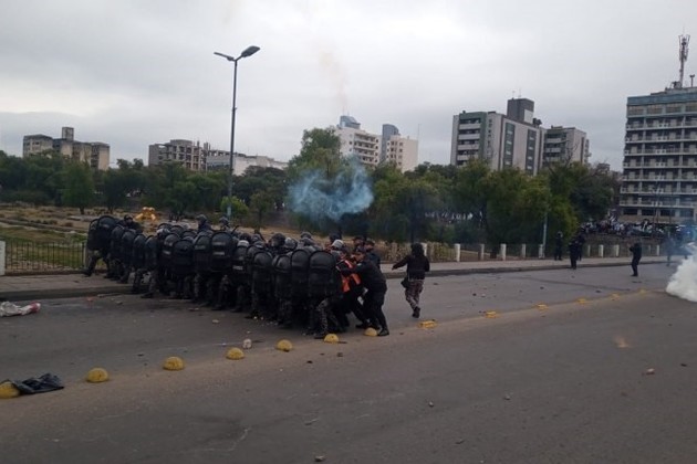 El avance policial se produjo alrededor de las 11 de la mañana, a unos 200 metros del parlamento provincial, donde el gobernador Gerardo Morales lideraba la sesión y se disponían a jurar la reforma constitucional.