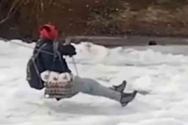 La opción que encontraron los vecinos para acercarle víveres fue llegar con una tirolesa, para atravesar el río Senguer, que está congelado. En las últimas horas, se viralizó un video en el que se ve a uno de ellos cruzando.