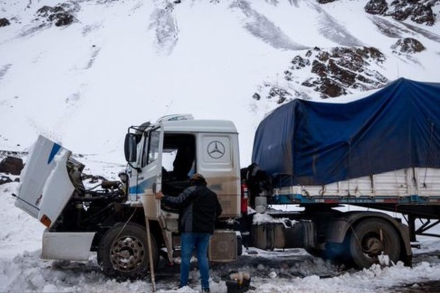 Ante las malas condiciones meteorológicas y fuertes nevadas en la cordillera de Los Andes, unos 2000 camiones permanecen varados para cruzar a Chile por El Paso Cristo Redentor mientras se implementó un operativo de seguridad para evitar que los turistas queden atrapados en la nieve tal como ocurrió el fin de semana pasado.