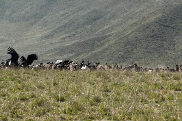 Una familia registró en video 90 cóndores andinos alimentándose juntos.