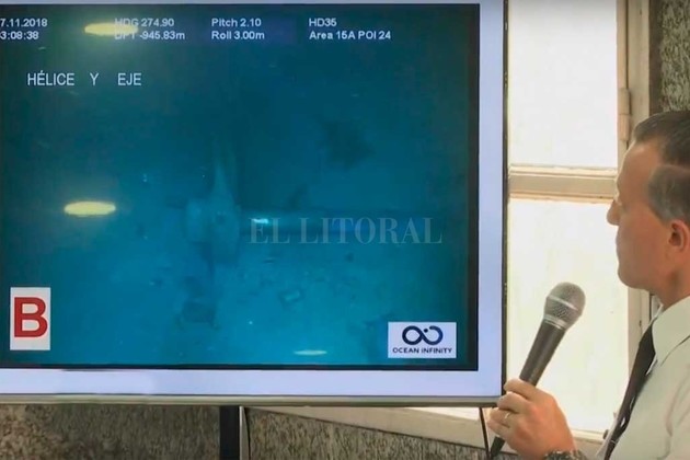 Según el "escueto y conciso informe preliminar" que dio la empresa Ocean Infinity a la fuerza y al Ministerio de Defensa, "el área de escombros es de 80 por 100 metros, lo que sugiere que podría haber implosionado, colapsado muy cerca del fondo", señaló el ex vocero de la Armada y actual agregado naval en la Embajada argentina en Estados Unidos, Enrique Balbi.