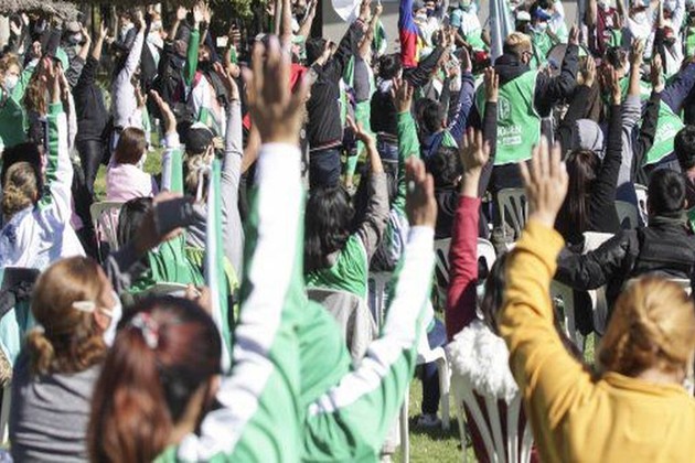Quintriqueo remarcó que en el ofrecimiento “no solo hay incremento en los haberes sino que también hay un pase a planta de 1500 trabajadores eventuales dentro de Salud y Desarrollo Social”, por lo que convocó a los presentes a apoyarla.