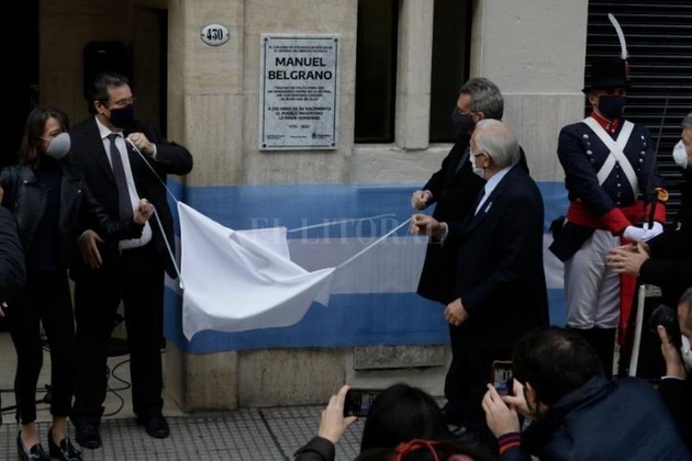El 3 de junio de 1770, nacía en en la ciudad de Buenos Aires (Virreinato del Perú para aquel entonces), 𝗠𝗮𝗻𝘂𝗲𝗹 𝗝𝗼𝘀𝗲́ 𝗝𝗼𝗮𝗾𝘂𝗶́𝗻 𝗱𝗲𝗹 𝗖𝗼𝗿𝗮𝘇𝗼́𝗻 𝗱𝗲 𝗝𝗲𝘀𝘂́𝘀 𝗕𝗲𝗹𝗴𝗿𝗮𝗻𝗼. "Mucho me falta para ser un verdadero padre de la patria, me contentaría con ser un buen hijo de ella", dice la placa descubierta en la puerta del lugar donde nació el creador de la Bandera Nacional, ubicada en la avenida Belgrano 430, y recuerda una de sus frases. "Fue un hombre de pensamiento. La economía fue uno de sus hitos más importantes, que nos queda para siempre. También el luchador, que emprende su viaje al Paraguay, después al norte, y la creación de la bandera", resumió Bauer en un breve acto que se hizo en la vereda. "Recordemos siempre a Belgrano", agregó.