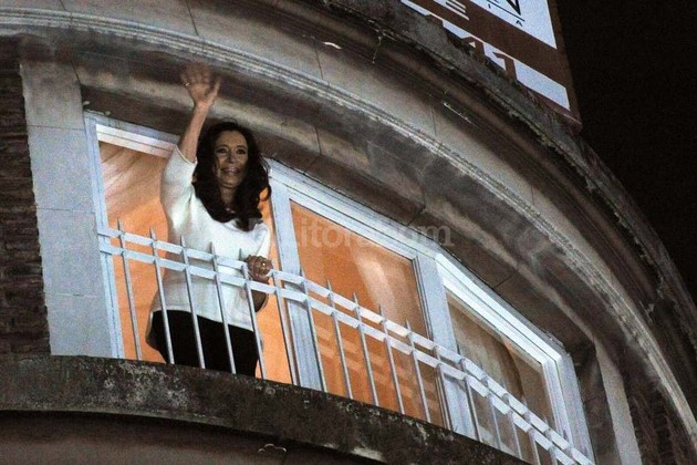Antes de subir al vehículo, un Chevrolet blanco, Cristina Fernández, se paró sobre uno de los estribos y volvió a saludar con su mano a los militantes.