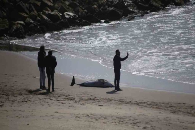 Especialistas tomaron muestras y medidas para saber por qué apareció tan cerca de la playa y determinar las causas de su muerte.