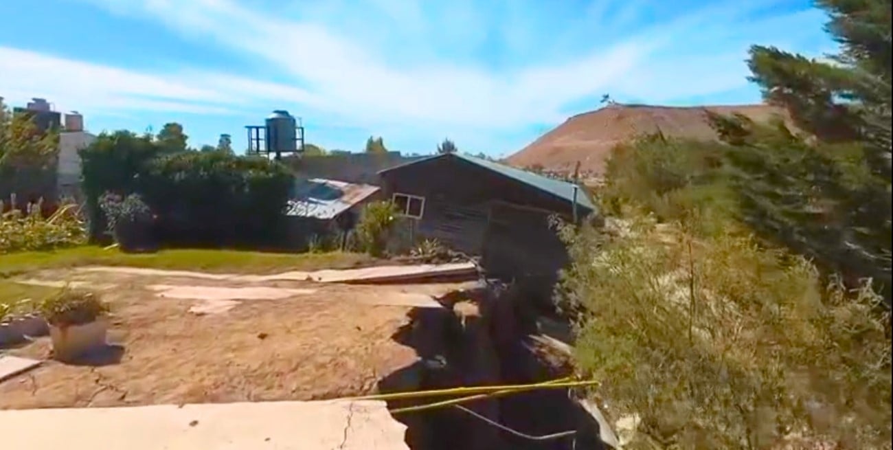 Casas partidas, calles quebradas y un centenar de familias evacuadas por el deslizamiento en Chubut