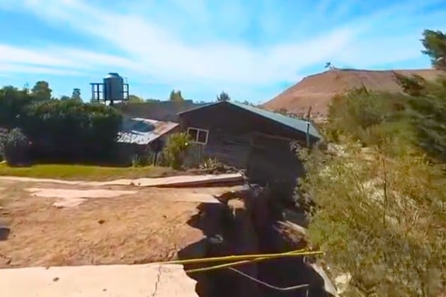 Una casa literalmente partida a la mitad: consecuencias del suceso geológico.