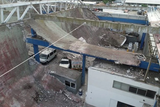 Sucedió esta madrugada en el Distrito Descentralizado El Gaucho. Seis secciones de una antigua losa se derrumbaron sobre cerca de 40 vehículos que allí se guardaban.