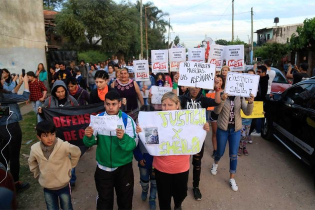Este viernes por la tarde, un grupo de habitantes de la zona marchó desde la casa de la familia materna de la víctima hacia el predio ubicado en la calle Maestro Ferreyra al 100, en donde fue hallada muerta Sheila.