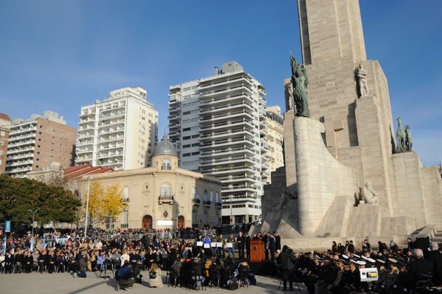 Ante el Monumento a la Bandera de Rosario, esta vez con la ausencia del presidente de la Nación, el gobernador Omar Perotti y el intendente Pablo Javkin encabezaron la celebración desde las 9 horas.