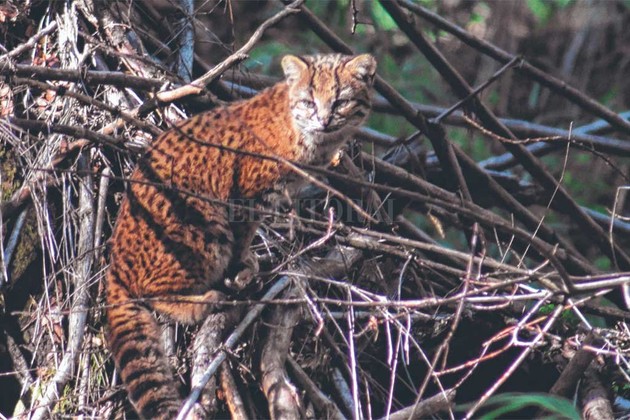 Se trata de un ejemplar de gato huiña, de muy difícil avistaje, que se les cruzó en forma inesperada. Los turistas confundieron al animal con una ardilla, pero no tardaron en comprender que se trataba de un felino autóctono y quedaron maravillados.
