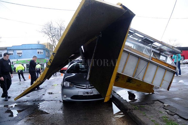 "Fue tan rápido que no dio tiempo a nada. Estaba con un cliente, empezó a llover y a los tres segundos el puesto estaba tumbado sobre el auto", dijo a la prensa la empleada del puesto de diario, llamada Giselle, quien debió ser ayudada por vecinos para salir de la estructura.