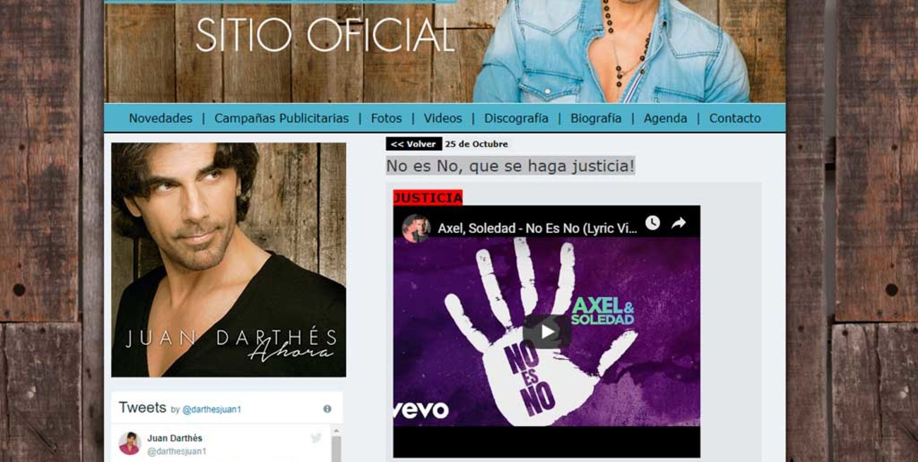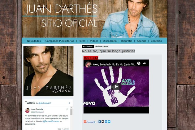 En la web, Darthés da a conocer sus actividades actorales y musicales. Dentro de la sección "Novedades" apareció el mensaje que reivindica la lucha que están encabezando desde Actrices Argentinas y que desató una ola de reacciones.