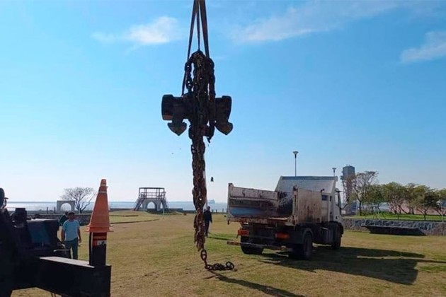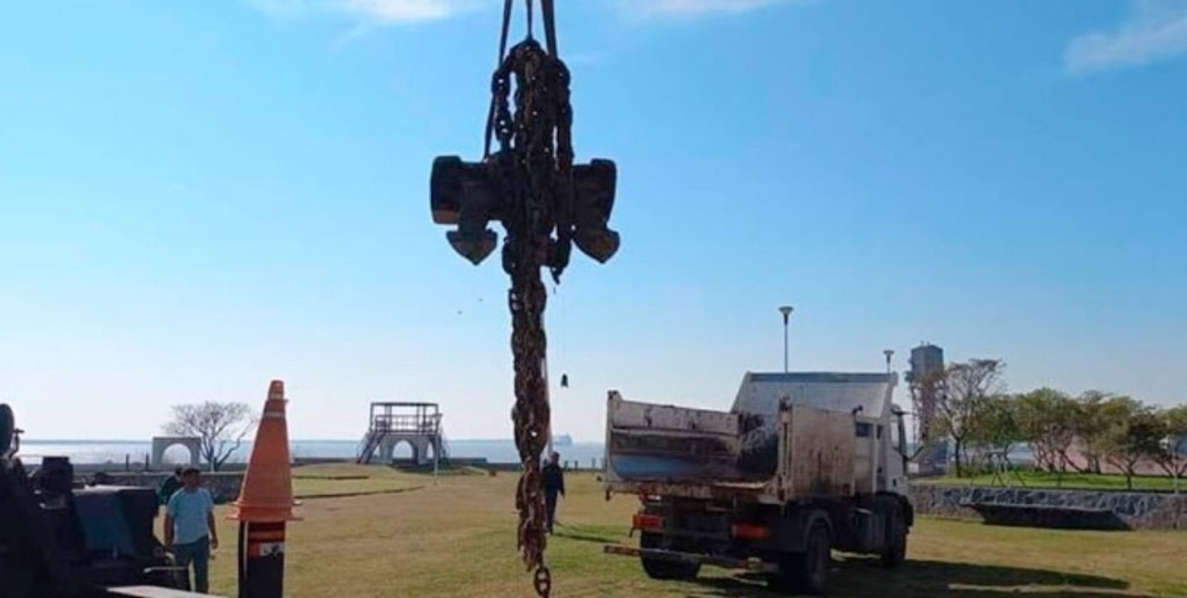Allí, la altura del río dejó al descubierto un enorme ancla con sus correspondientes cadenas. El sorprendente caso requirió de una urgente intervención del personal del área de Turismo local debido al peligro que significaba su presencia para embarcaciones, transeúntes y fauna de la zona.