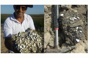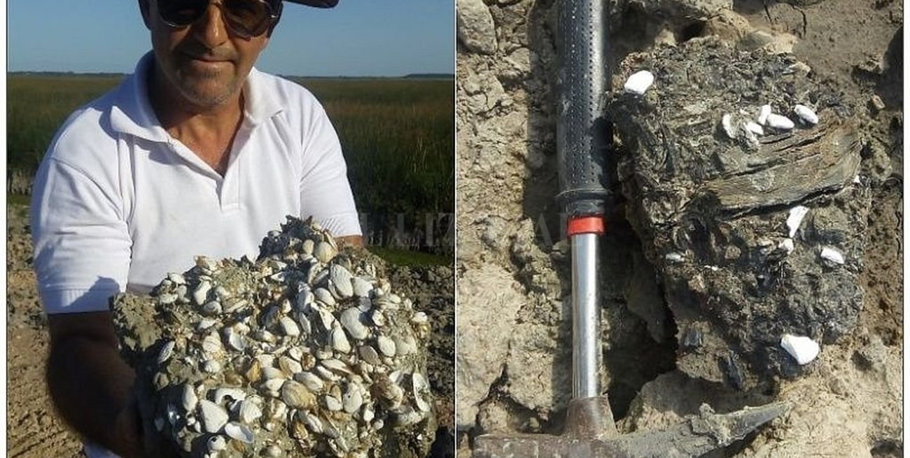 El hallazgo se produjo en Campo Spósito, en la zona conocida como Bajo del Tala, mientras se realizaban excavaciones de tareas rurales. “Toda esa acumulación de materiales no es otra cosa que la rompiente de una playa marina de unos cinco mil años de antigüedad”, señaló Aguilar.