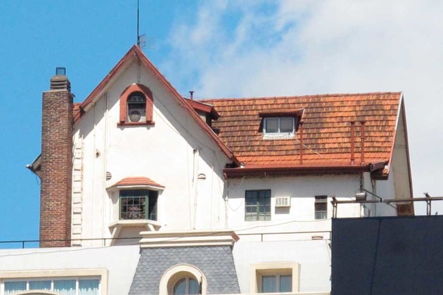 Cuando se ingresa por el subsuelo del edificio de nueve pisos, el ascensor se detiene en su terraza y da paso a un chalet estilo "marplatense" construido en 1926.