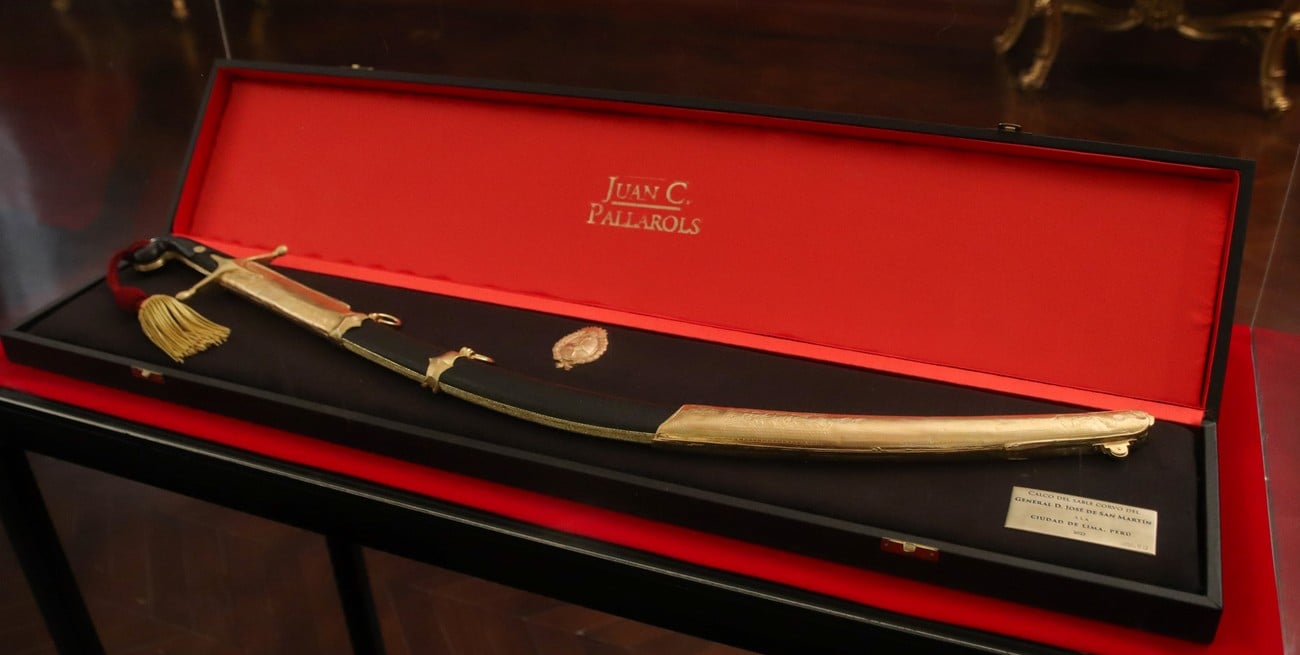 Mirá tambiénAduana recuperó un impreso original de la Declaración de Independencia de 1816Para hacer posible esta muestra, el 4 de julio pasado, el orfebre argentino Juan Carlos Pallarols le hizo entrega al burgomaestre limeño, Rafael López Aliaga, de un ejemplar similar al célebre sable corvo del Libertador Don José de San Martín. Se trata de una obra de arte finamente elaborada que muestra los detalles del sable original. Además, hasta el 13 de julio se exhibió el Acta Original de la Declaración de la Independencia Nacional de Perú, un retrato de San Martín realizado por el pintor Daniel Hernández y otro del Conde de San Isidro, obra de Francisco Gonzáles Gamarra.