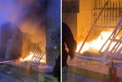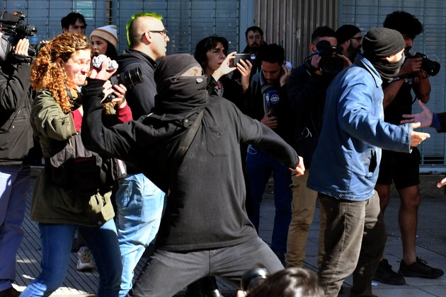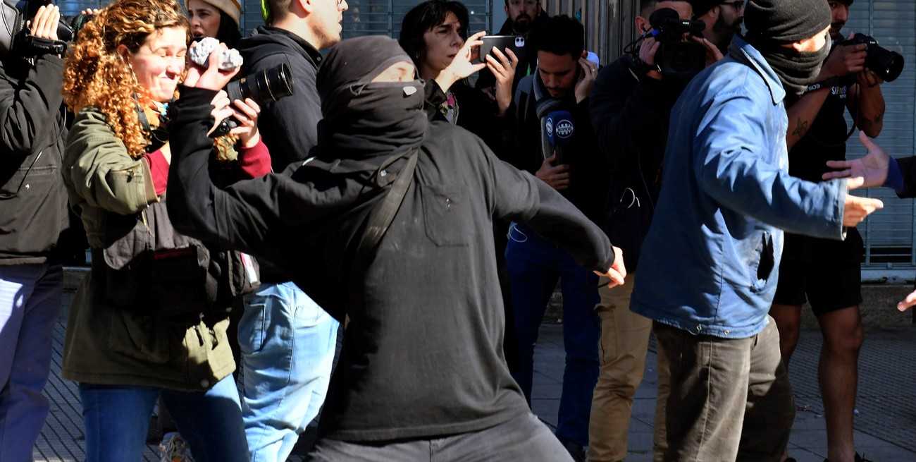Militantes encapuchados comenzaron a tirar piedras y bombas molotov contra el frente de la dependencia y provocaron algunos focos de incendio, hasta que minutos después se retiraron y cuadrillas de empleados comenzaron a limpiar las calles afectadas.