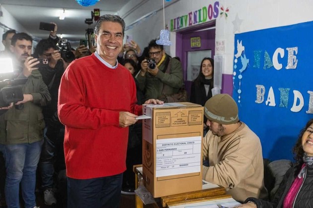 Jorge Capitanich votó segundos después del comienzo de la elección vestido con un suéter rojo similar a la vestimenta del movimiento de Emerenciano Sena.