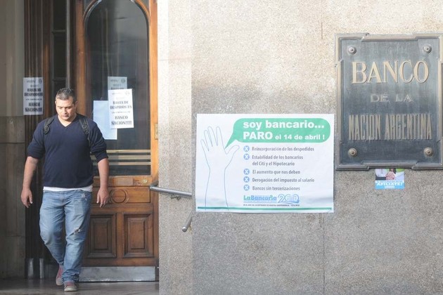Trabajadores de bancos públicos y privados cumplían hoy un paro nacional por 24 horas, ante la falta de resolución de la paritaria del sector y contra los despidos "por revanchismo político", y no descartaban una nueva medida de fuerza por 48 horas en caso de no obtener respuestas a los reclamos.