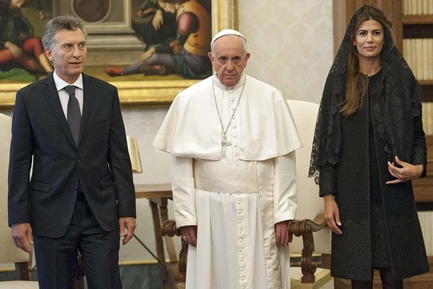 Awada, quien visitó de negro y usó una mantilla en la cabeza como indica el protocolo, dialogó en forma distendida con el Papa y fue la única que le sacó una sonrisa del pontífice, no así el Presidente.