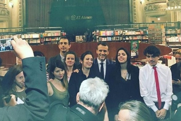 El presidente francés, Emmanuel Macron, como primer actividad en Argentina apostó por la cultura y tuvo un desayuno esta mañana la histórica librería El Ateneo. Además se llevó varios libros de escritores argentinos y uno de fotos de Sara Facio .