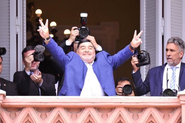 Luego de la audiencia, Maradona saludó desde el mismo balcón donde, primero, en 1979 festejó con la Selección argentina el título Mundial juvenil de Japón y luego en 1986 el de México junto al presidente Raúl Alfonsín.