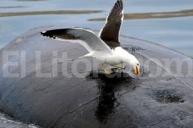 "Hasta unos años, la ballena hacía un movimiento oblicuo, salía a 45º del agua. Asomaba la cabeza, después el lomo y por último la cola. Y así respiraba. Los ataques de las gaviotas hicieron que sólo asomen la cabeza", señaló.
