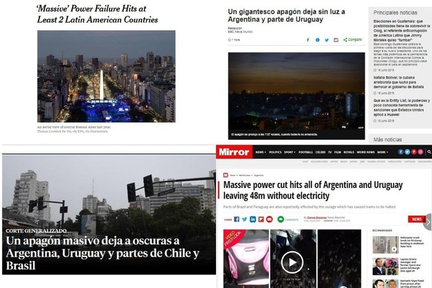 La noticia del apagón argentino, que también afectó a buena parte del Uruguay, el sur de Brasil y esa región de Chile, repercutió también en el ámbito internacional