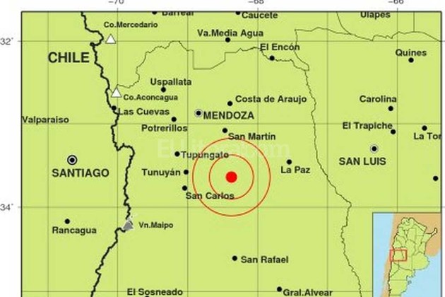 El sismo tuvo una profundidad de 10 kilómetros, a 100 kilómetros al sudoeste de la ciudad de Mendoza y 60 kilómetros al este de Tunuyán, según información preliminar y sujeta a revisión del Instituto Nacional de Prevención Sísmica (Inpres).