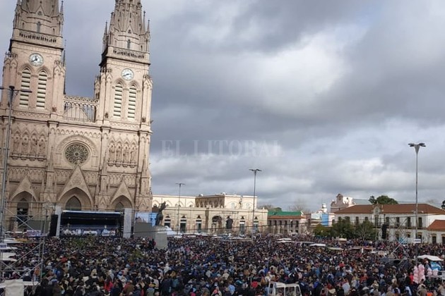 Oscar Ojea, presidente del Episcopado, encabezó el encuentro ante una multitud de personas (entre ellas, algunos funcionarios políticos) que viajaron hasta Luján desde todo el país.
