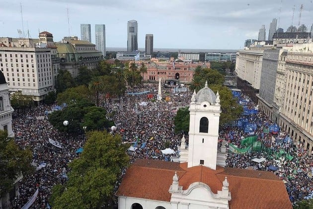 Por su parte, la referente de Madres Línea Fundadora, Tati Almeida, leyó otro fragmento del texto en donde se afirmó que "sin derechos, no hay democracia", consideró un "pago irresponsable la deuda a los fondos buitres" y repudió el "intento destituyente a las democracias de Latinoamérica".