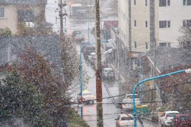 La capital fueguina registra nevadas intermitentes, aunque con acumulación en las zonas altas, desde ayer a la tarde, mientras que el cierre de septiembre se presentó esta mañana con características similares.