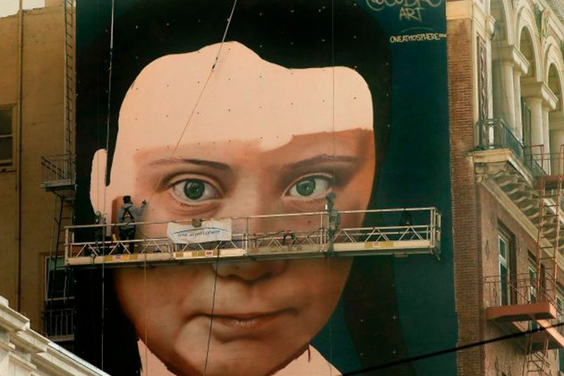 El artista argentino Andrés "Cobre" Iglesias comenzó a pintar un mural gigantesco con la cara de la activista sueca contra el cambio climático Greta Thunberg en la pared de un edificio en el centro de San Francisco, Estados Unidos, informaron hoy medios locales.