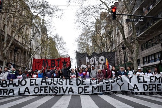 Y agregó: "Con el ajuste de Massa a pedido del FMI, con una inflación demencial que se come los salarios y las jubilaciones, con un ministro de economía que trajo dos millones de nuevos pobres y hoy se presenta como candidato a presidente es imposible enfrentar una avanzada del fascismo".