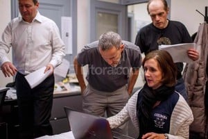 Telam La periodista Marina Walker, en su oficina con los colegas de Le Monde Gérard Davet y Fabrice Lhomme.Telam La periodista Marina Walker, en su oficina con los colegas de Le Monde Gérard Davet y Fabrice Lhomme.