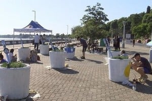 Los mates gigantes dispuestos en la costanera de Paraná comenzaron a ser intervenidos artísticamente este martes, en la previa a la Fiesta Nacional del Mate que se desarrollará en la capital provincial este fin de semana.