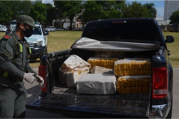 En el kilómetro 1.058 pudieron detenerlos y realizar la inspección correspondiente a la camioneta. Dentro, hallaron 660 kilos 638 gramos de marihuana distribuidos en 27 bultos hechos con bolsas de nylon y arpillera que contenían un total de 924 paquetes.