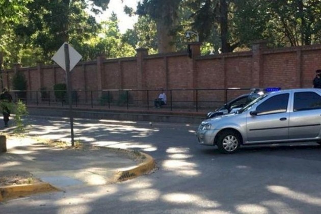 Luego de acordonar la zona, sobre la calle Villate a unos cien metros del ingreso del famoso portón verde de la residencia presidencial, la policía tomó contacto con el hombre, que está sentado con su espalda apoyada sobre el paredón, con una remera blanca y un pantalón de jean azul.