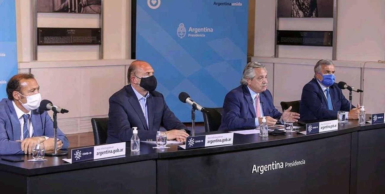 "Tenemos que hacer en las provincias lo que hicimos en el AMBA", dijo el jefe de Estado en un mensaje en vivo desde la Casa de Gobierno, donde estuvo acompañado por los gobernadores Omar Perotti (Santa Fe), Gerardo Morales (Jujuy) y Omar Gutiérrez (Neuquén).